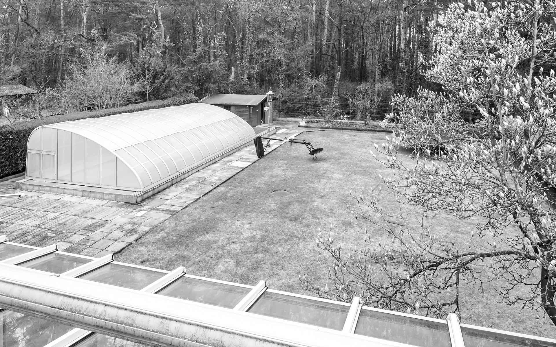 Eine Villa im Grünen mit großer Terrasse,